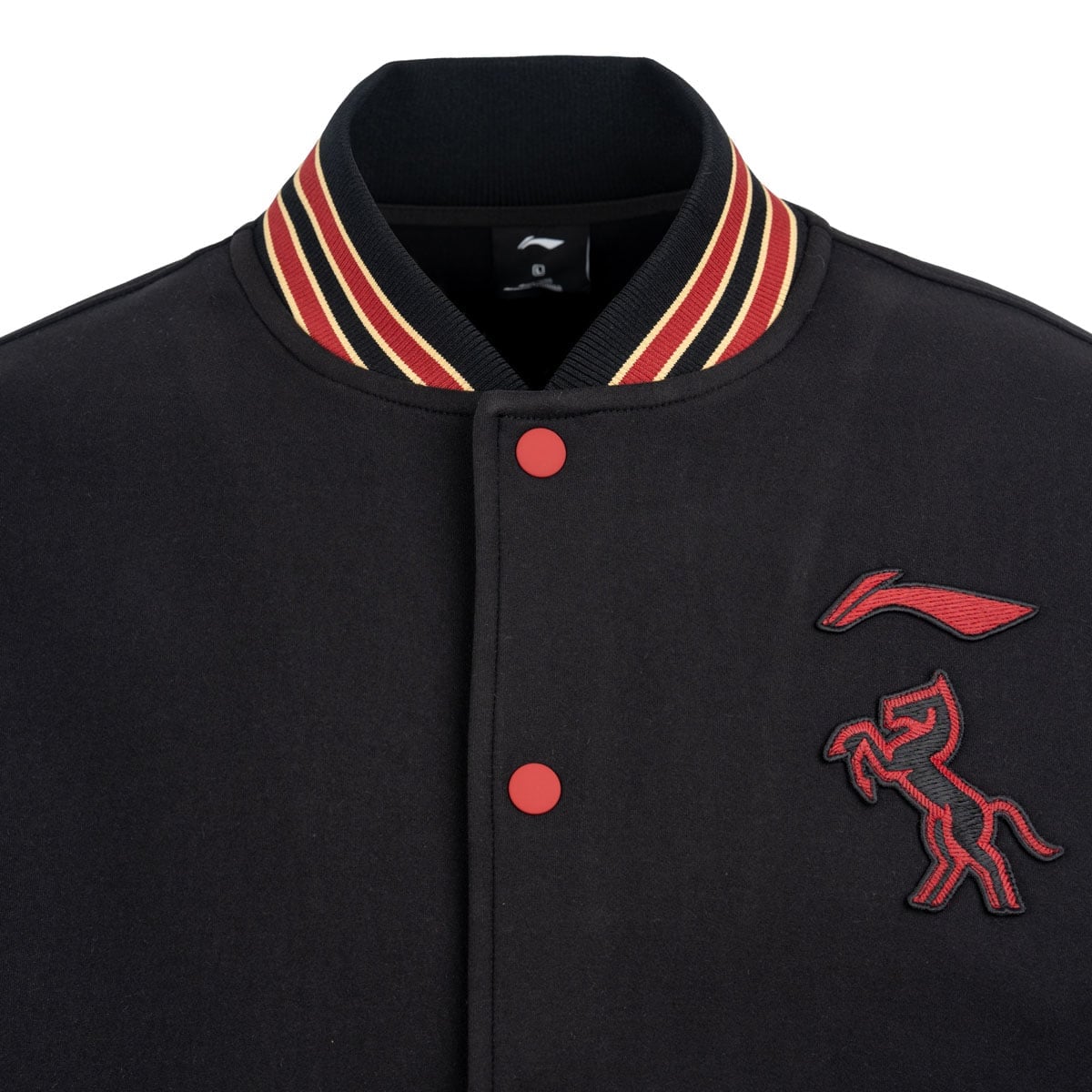 Áo khoác dáng bomber, dễ dàng phối hợp với nhiều phong cách thời trang Thiết kế hàng khuy bấm phối màu tương phản, liên tưởng đến concept Tết nguyên đán, tạo điểm nhấn tinh tế Chất liệu vải dệt kim trọng lượng cao, áo đứng dáng, giữ ấm và tôn form tốt Gấu áo thiết kế logo đặc biệt kết hợp chữ chữ “马” (ngựa) và hoạ tiết nút thắt Trung Hoa, mang ý nghĩa may mắn, cát tường Trước ngực áo thiết kế hoạ tiết chủ đề năm Ngựa kết hợp kỹ thuật thuật thêu tinh xảo, tạo hiệu ứng nổi và tôn lên vẻ cao cấp