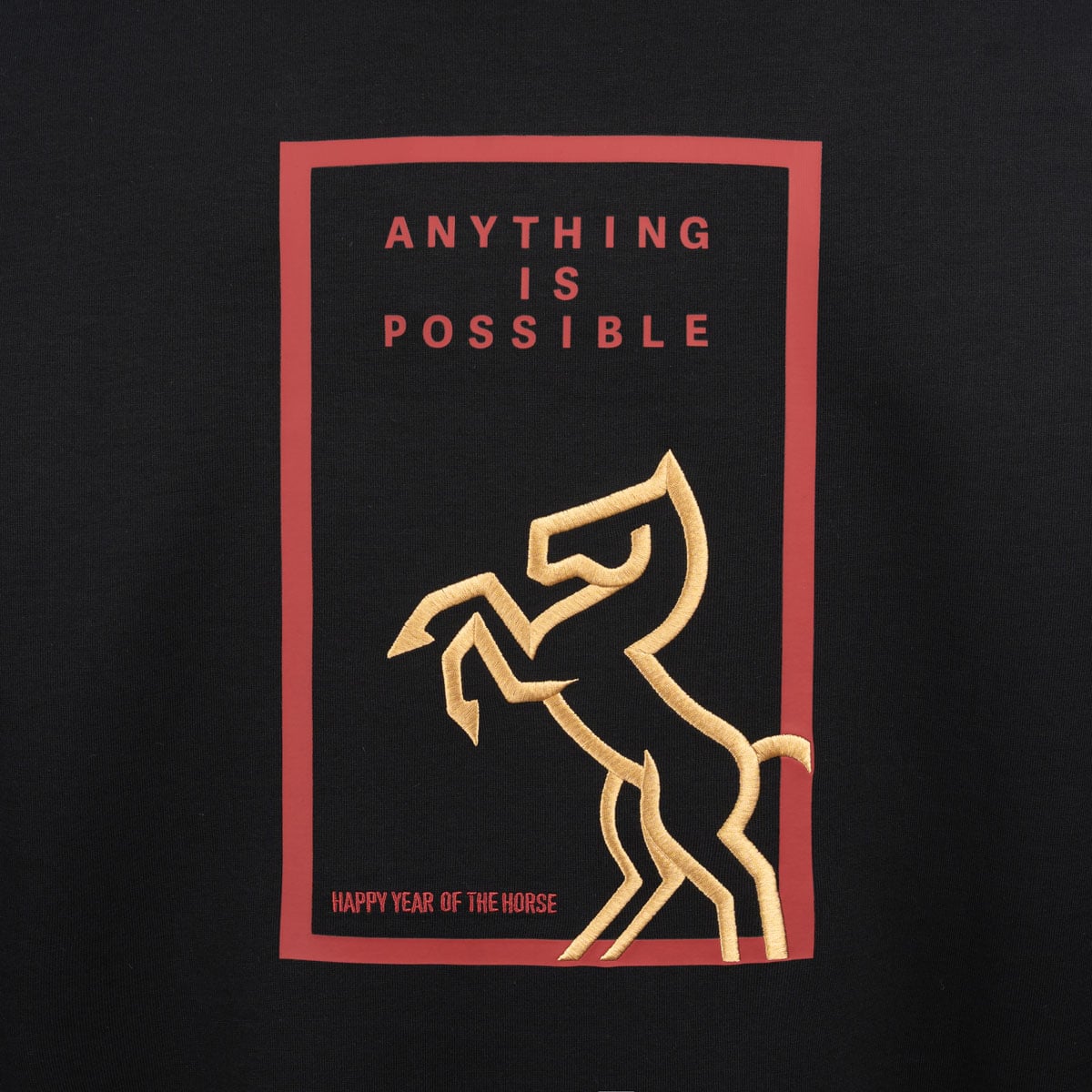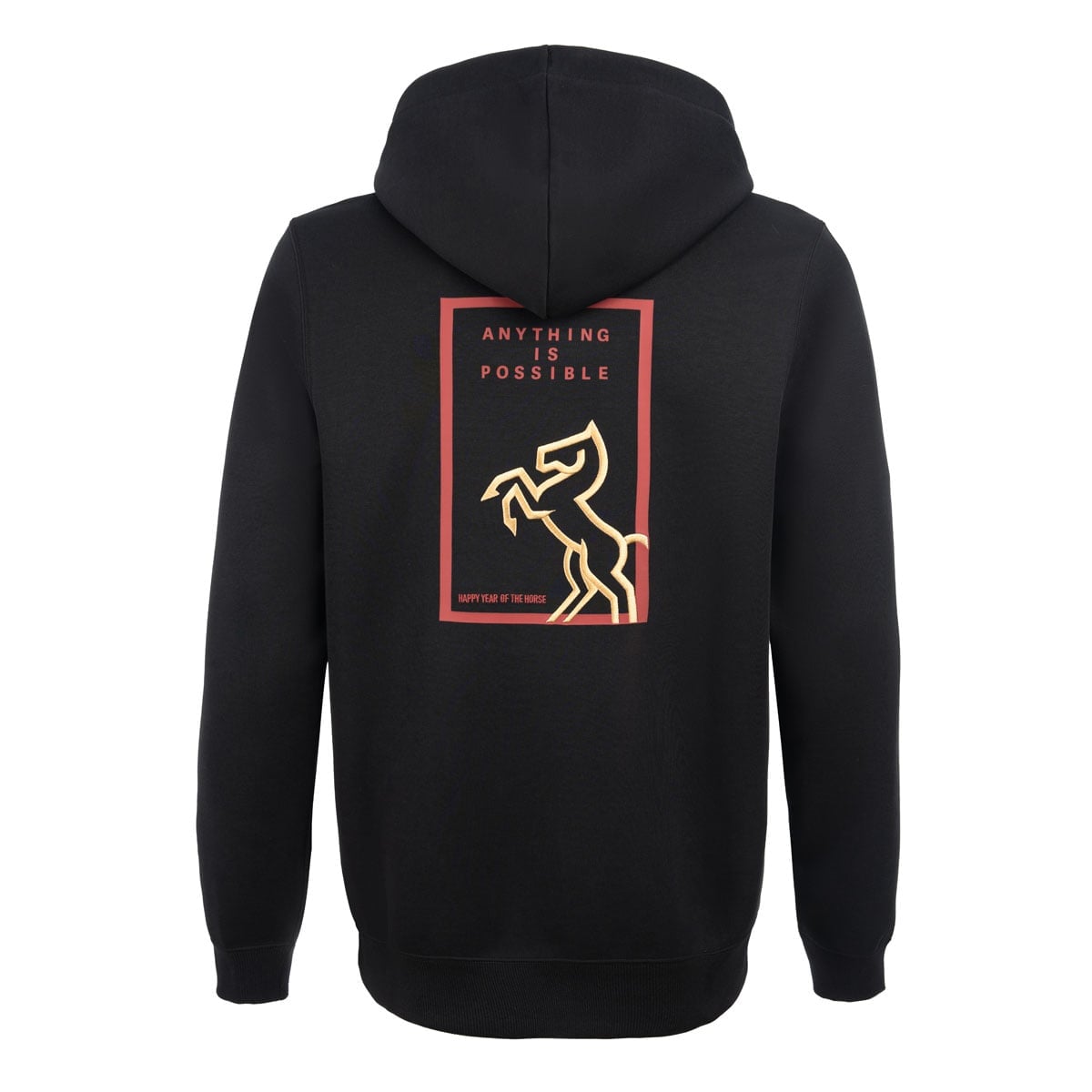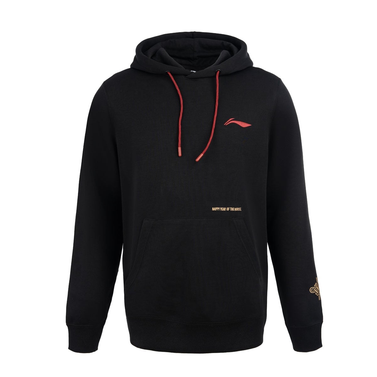 Áo hoodie có mũ mang lại cảm giác ấm áp thoải mái.Trên tay áo thiết kế logo logo đặc biệt kết hợp chữ chữ “马” (ngựa) và hoạ tiết nút thắt Trung Hoa, mang ý nghĩa may mắn, cát tường.Phía sau lưng là hoạ tiết chủ đề năm Ngựa, được thể hiện qua nhiều kỹ thuật thủ công tinh xảo, tạo điểm nhấn sang trọng tinh tế