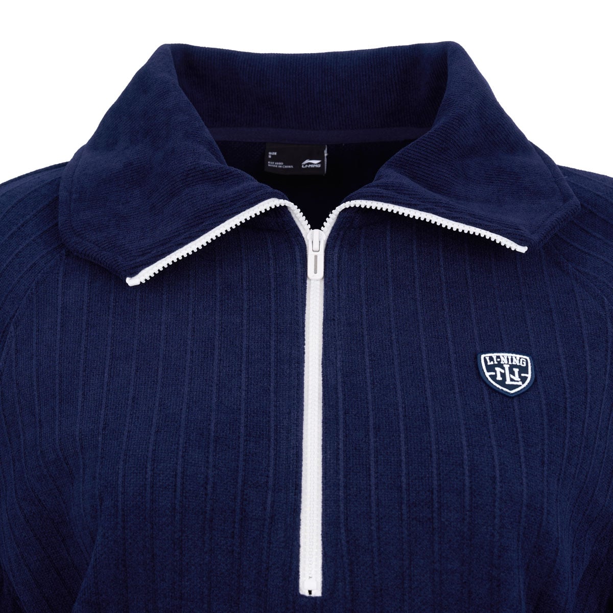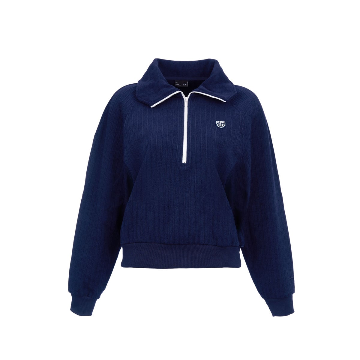 Áo nỉ form rộng dễ dàng vận động, thoải mái. Phong cách casual năng động, hợp thời trang. Thiết kế tay raglan, cổ bẻ phối màu tương phản, kéo khoá nửa thân trước, huy hiệu thêu tinh xảo trên ngực trái làm nổi bật phong cách thể thao . Chất liệu vải dệt kim jacquard vân sọc tự nhiên
