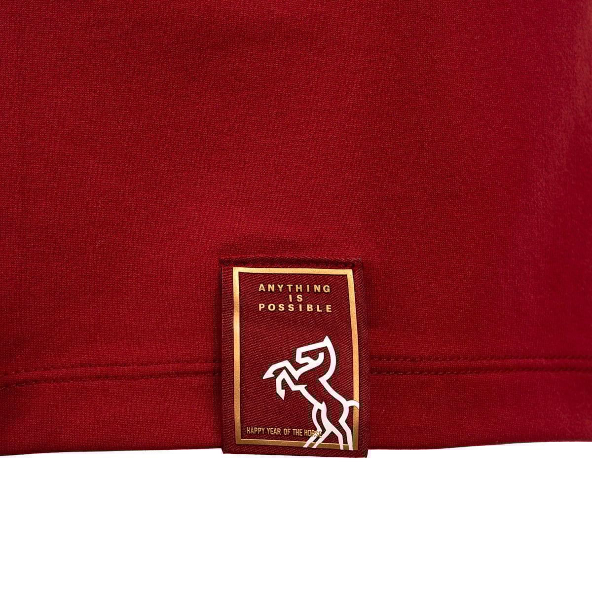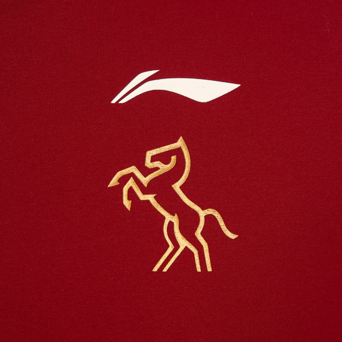 Phía trước ngực áo sử dụng hoạ tiết chủ đề năm Ngựa với hình “bóng ngựa nhảy” cách điệu kết hợp với logo Li-Ning, tối giản và tinh tế. Phía sau cổ áo thiết kế logo đặc biệt kết hợp chữ chữ “马” (ngựa) và hoạ tiết nút thắt Trung Hoa, mang ý nghĩa may mắn, cát tường. Gấu áo được điểm xuyết bằng nhãn dệt thêu tỉ mỉ, tôn lên vẻ cao cấp của sản phẩm