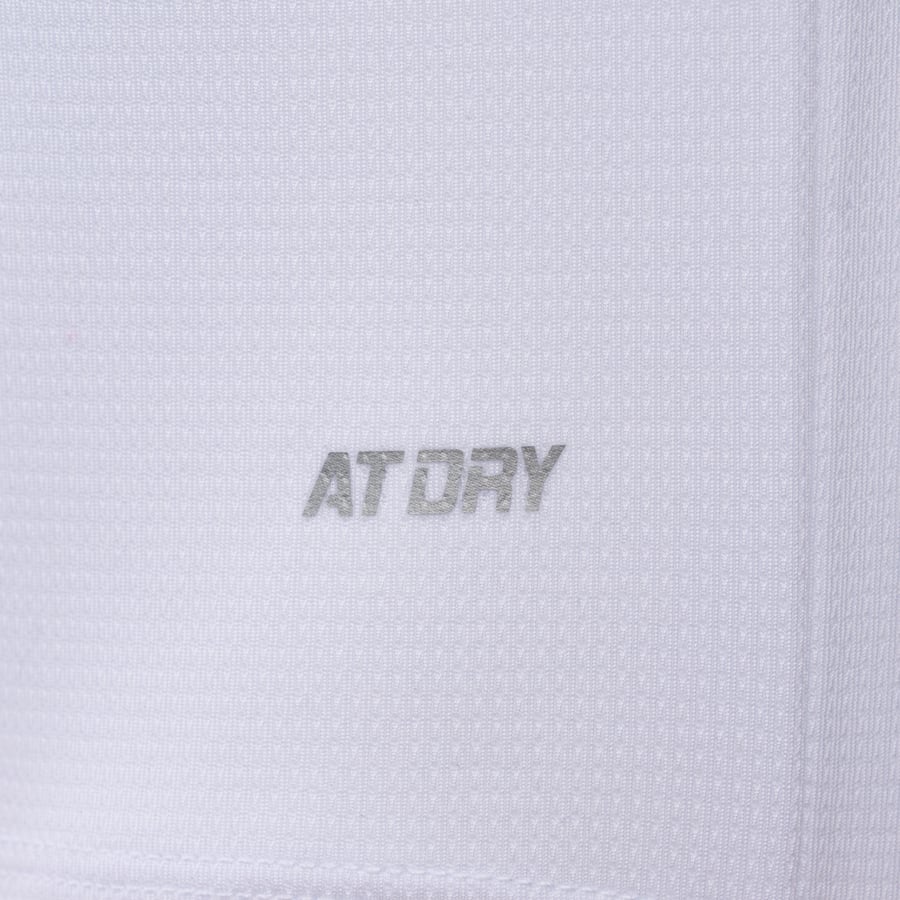 AT DRY: Tận dụng nguyên lý mao dẫn (siphon effect) giúp thoát mồ hôi nhanh chóng trên bề mặt da, đồng thời khuếch tán và bay hơi nhanh trên bề mặt vải, giữ cho da luôn khô ráo, mát mẻ và thoải mái. Vải có đặc tính khô nhanh, thoáng mát; khi mồ hôi tiết ra khiến vải bị ẩm, thông qua sự khuếch tán và bay hơi nhanh để đưa mồ hôi ra khỏi cơ thể, đồng thời làm giúp giảm nhiệt độ cơ thể khi nhiệt độ cơ thể ở mức quá cao, luôn giữ sự khô ráo, thoáng mát và thoải mái cho cơ thể trong quá trình vận động.