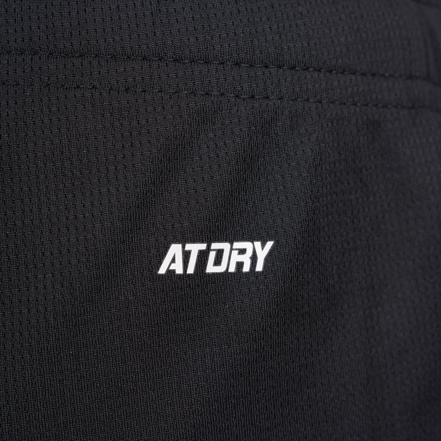 AT DRY: Tận dụng nguyên lý mao dẫn (siphon effect) giúp thoát mồ hôi nhanh chóng trên bề mặt da, đồng thời khuếch tán và bay hơi nhanh trên bề mặt vải, giữ cho da luôn khô ráo, mát mẻ và thoải mái. Vải có đặc tính khô nhanh, thoáng mát; khi mồ hôi tiết ra khiến vải bị ẩm, thông qua sự khuếch tán và bay hơi nhanh để đưa mồ hôi ra khỏi cơ thể, đồng thời làm giúp giảm nhiệt độ cơ thể khi nhiệt độ cơ thể ở mức quá cao, luôn giữ sự khô ráo, thoáng mát và thoải mái cho cơ thể trong quá trình vận động.